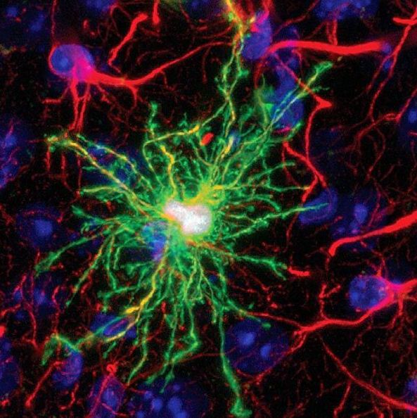 Иными словами, человеческие клетки нейроглии делали мышей умнее. И это заставляет по-новому взглянуть на эволюцию мозга. Очевидно, служебные клетки принимают в развитии мозга куда большее участие, чем можно было бы ожидать: они влияют на архитектуру нейронных цепей, определяют силу синапсов, и получается, что чем совершеннее, чем эффективнее астроцит, тем лучше работает мозг. И теперь очевидно: психоневрологические проблемы могут возникать как раз потому, что служебные клетки мозга плохо выполняют свою работу — и это сказывается на функционировании уже самих нейронов.