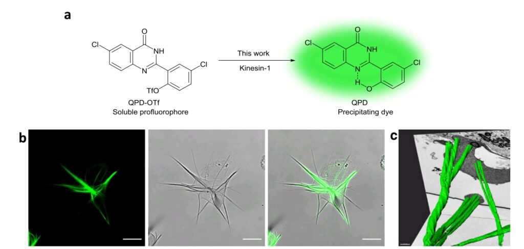 Однако несмотря на то, что кинезины во время движения полагаются на энергию расщепления АТФ, в экспериментах вне клетки АТФ кинезину не понадобилась: краска все равно кристаллизовалась. Авторы работы сделали вывод, что кинезин может использовать разработанную ими флуорогенную краску как альтернативный субстрат, и в результате реакции и образуются флуоресцирующие кристаллы. Исследователи считают, что случайно полученный ими инструмент может помочь и дальше наблюдать за активностью двигательного белка в живых клетках.